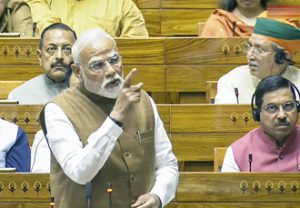 ਨਵੀਂ ਦਿੱਲੀ/ਬਿਊਰੋ ਨਿਊਜ਼ : ਪ੍ਰਧਾਨ ਮੰਤਰੀ ਨਰਿੰਦਰ ਮੋਦੀ ਨੇ ਲੋਕ ਸਭਾ ‘ਚ ਕਿਹਾ ਕਿ ਕਿਸੇ ਵੀ ਦੇਸ਼ ਦੇ ਨੇਤਾ ਨੇ ਭਾਰਤ ਨੂੰ ਅਪਰੇਸ਼ਨ ਸਿੰਧੂਰ ਰੋਕਣ ਲਈ ਨਹੀਂ ਕਿਹਾ ਪਰ ਉਨ੍ਹਾਂ ਇਸ ਗੱਲ ‘ਤੇ ਅਫਸੋਸ ਜ਼ਾਹਿਰ ਕੀਤਾ ਕਿ ਦੇਸ਼ ਨੂੰ ਪੂਰੀ ਦੁਨੀਆ ਦੀ ਹਮਾਇਤ ਮਿਲੀ ਪਰ ਕਾਂਗਰਸ ਤੇ ਉਸ ਦੇ ਸਹਿਯੋਗੀ ਭਾਰਤੀ ਸੈਨਿਕਾਂ ਦੀ ਬਹਾਦਰੀ ਪਿੱਛੇ ਖੜ੍ਹੇ ਨਾ ਹੋ ਸਕੇ।